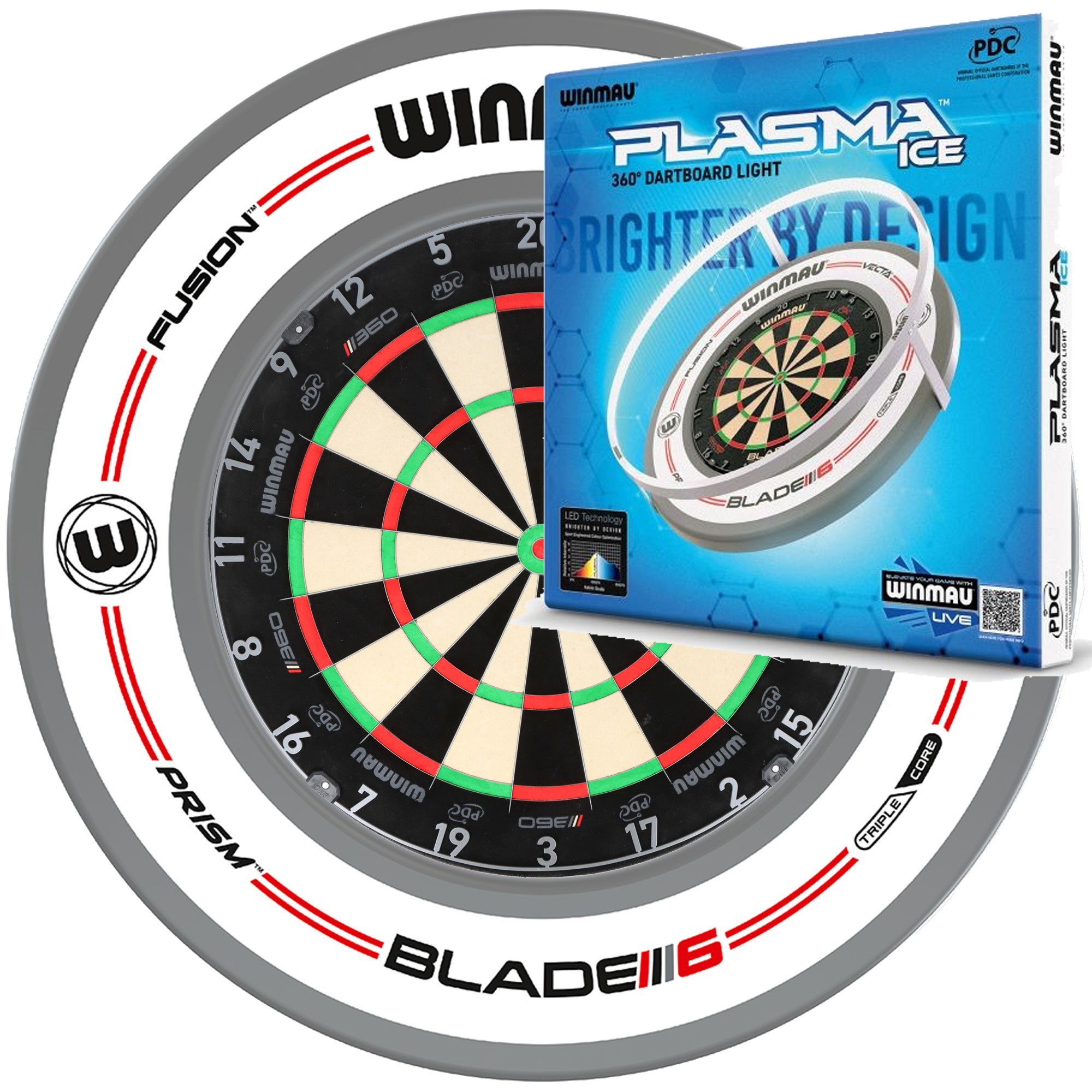 Blade 360 Dartboard Starter Set, Bundle bestehend aus Dartboard, Surround und Licht, weiße Ausführung kurz und kompakt, das Steeldart Dartboard Starter Set stellt sich vor ✅ Blade 360 Starter Set – ideal für den Einstieg in die Dartswelt oder als Neuausstattung geeignet! ✅ Bundle bestehend aus: Blade 360 Dartboard, Blade 6 Surround weiß und Plasma ICE weiß ✅ das neue und offizielle Dartboard der PDC – das neue Winmau Blade 360 Dartboard! ✅ All-In-One Sparset für dein Dartzimmer, Keller, Hobbyraum etc.! ✅ hochwertige Ausstattung und durchdachtes Design ✅ hochwertige Verarbeitung, gewohnt hohe Qualität von Winmau! Du träumst davon, dein eigenes kleines Dartparadies zu schaffen? Dann ist das Blade 360 Dartboard Starter Set genau das Richtige für dich. Dieses umfassende All-in-One Power Bundle bringt nicht nur die Atmosphäre eines echten PDC-Turniers zu dir nach Hause, sondern liefert dir auch die perfekte Ausstattung, um direkt loszulegen – egal, ob du Einsteiger oder ambitionierter Hobbyspieler bist. Das Herzstück: Das neue Winmau Blade 360 Dartboard Das Winmau Blade 360 triple core carbon ist nicht irgendeine Dartscheibe. Es ist das offizielle Dartboard der PDC – der Professional Darts Corporation. Dieses Board ist die nächste Generation nach dem legendären Blade 6 triple core carbon und bietet eine echte Innovation: Durch das neue, symmetrische Grafikdesign kannst du die Scheibe bis zu 10-mal rotieren, ohne dass die Optik darunter leidet. Das bedeutet: deutlich längere Lebensdauer, weniger einseitige Abnutzung und dauerhaft optimales Spielgefühl. Was macht das Blade 360 so besonders? Triple Core Carbon Technologie für maximale Haltbarkeit Schmaler Draht für minimierte Abpraller (Bouncer) Erhöhte Punktfläche durch optimierte Spielfeldaufteilung Rotierbar in 10 verschiedenen Positionen – das gab es noch nie! Neues Design mit minimalistischem Aufdruck – ideal für Vielspieler Perfekte Beleuchtung – das Plasma LED Surround bringt Licht ins Spiel Gutes Licht ist beim Dartspielen kein Luxus – es ist Pflicht. Mit dem Plasma LED Surround erhältst du eine professionelle Rundumbeleuchtung mit 132 leistungsstarken LEDs. Diese sorgen für gleichmäßige, blendfreie Ausleuchtung deines Dartboards und verhindern störende Schatten – egal aus welchem Winkel du wirfst. Das Beste: Die Montage ist einfach, schnell und sicher an der Wand möglich. Nur 3 Bohrlöcher, und das Lichtwunder hängt bombenfest. Blade 360 Dartboard Starter Set – Das ultimative PDC Power Bundle für dein Dartzimmer Alle Komponenten dieses Sets stammen aus dem Hause Winmau, einer der weltweit renommiertesten Marken im Dartsport. Du bekommst hier keine Billigware, sondern Premium-Qualität, die du siehst, fühlst und vor allem beim Spielen merkst. Jeder Teil des Bundles wurde mit Sorgfalt, Know-how und Leidenschaft entwickelt. Einfache Montage – alles dabei, was du brauchst Keine Sorge, du musst kein Heimwerker-Profi sein, um dieses Set zu montieren. Im Lieferumfang ist alles enthalten, was du brauchst: Dartboard-Halterung mit Wandplatte, Schrauben und Wasserwaage zur Nivellierung Montagematerial für das LED-System Netzadapter inklusive – einfach einstecken und loslegen Plasma LED Surround lässt sich bequem an der Wand befestigen Surround-Schutzring einfach um das Board stecken – fertig! Für wen ist dieses Bundle geeignet? Ganz einfach: Für alle, die Dart lieben oder es lieben lernen wollen. Dieses Set ist perfekt für: Einsteiger, die direkt mit Top-Ausstattung starten möchten Fortgeschrittene, die ihr Setup auf ein neues Level heben wollen Vereine, die eine hochwertige Trainingsmöglichkeit suchen Dart-Fans, die ihr Dartzimmer oder ihren Hobbyraum professionell ausstatten möchten Geschenk-Suchende, die einem Dartspieler eine Riesenfreude machen wollen Warum gerade dieses Bundle wählen? Du bekommst hier nicht nur drei Produkte, sondern ein komplett durchdachtes System, das genau aufeinander abgestimmt ist. Die einzelnen Teile ergänzen sich perfekt – sowohl funktional als auch optisch. Und ganz ehrlich: Das Gefühl, auf dem gleichen Board zu spielen wie die Profis bei der PDC, ist einfach unbezahlbar. Ideal für jedes Setup – ob Zuhause oder im Verein Egal ob du einen Kellerraum, ein Wohnzimmer oder deinen eigenen Dart-Club einrichten willst – das Blade 360 Dartboard Starter Set macht überall eine Top-Figur. Durch das schlichte, moderne Design passt es sich jeder Umgebung an. Exzellente Langlebigkeit – ein Set, das mit dir wächst Dank der rotierbaren Board-Grafik und der langlebigen Materialien wirst du an diesem Set lange Freude haben. Besonders Vielspieler profitieren von der Möglichkeit, das Board regelmäßig zu drehen – so bleibt die Qualität auch bei intensivem Einsatz erhalten. Fazit: Wenn du’s ernst meinst mit Darts, ist dieses Set ein No-Brainer Warum noch zögern? Mit dem Blade 360 Dartboard Starter Set bekommst du alles, was du brauchst. Du wirst nicht nur besser spielen, sondern auch mehr Spaß dabei haben. Die Kombination aus Technik, Design und Qualität ist einfach unschlagbar. Starte dein Dart-Abenteuer oder bring dein Spiel auf das nächste Level – mit einem einzigen Bundle. Technische Daten Dartboard: Winmau Blade 360 Catchring: Winmau Blade 6 PDC Surround, weiß Licht: Winmau Plasma ICE, weiß Hersteller: Winmau