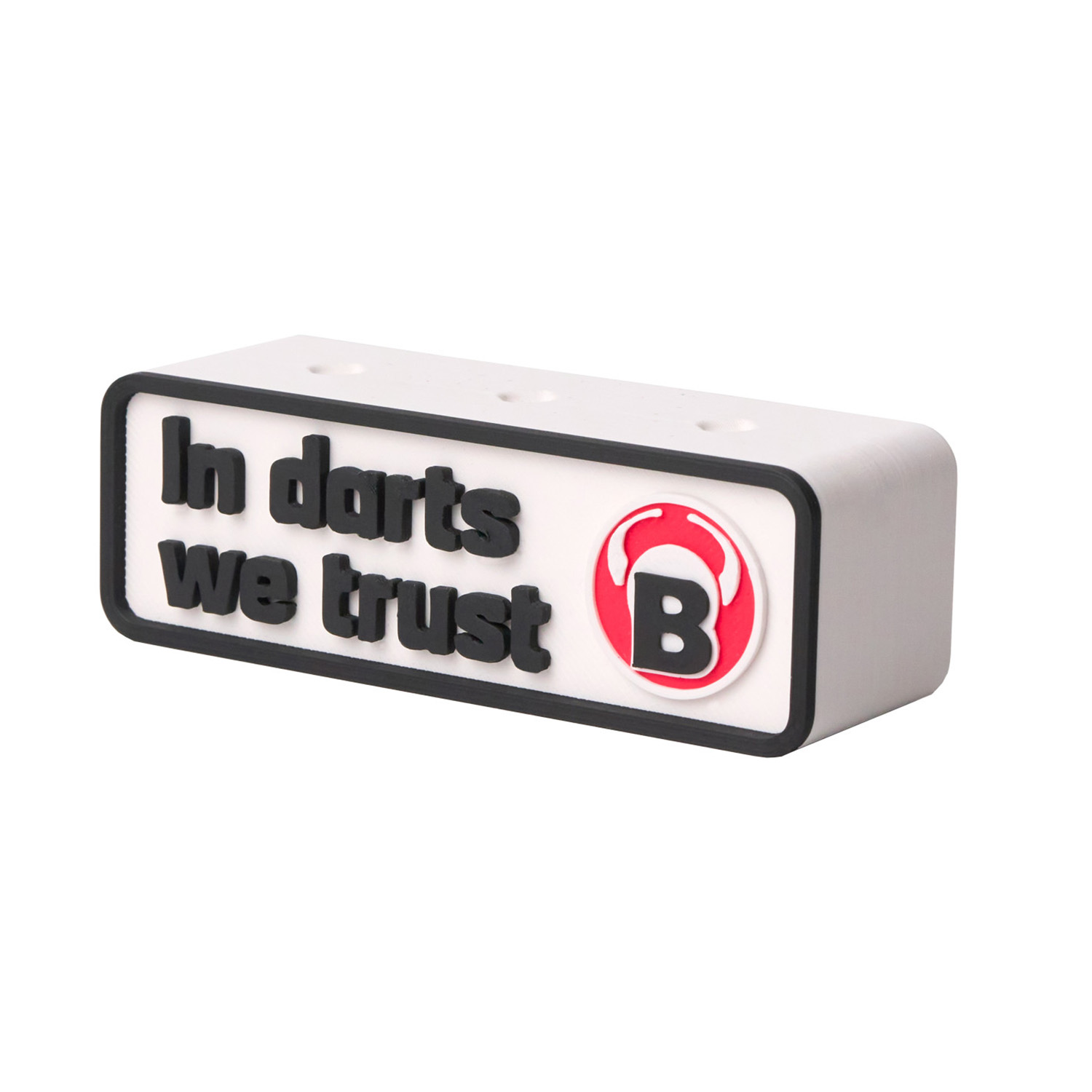 BULL’S Darthalter Dart Dock wei? Wei?, schlicht und ikonisch ? der eckige BULL’S Dart-Halter in Wei? bietet Platz f?r ein Dart-Set (3 Pfeile) und bringt mit dem Spruch ?In darts we trust? auf der linken Seite echte Dart-Leidenschaft in dein Setup. Rechts erg?nzt das runde BULL’S Logo das stilvolle Design. Gefertigt im pr?zisen 3D-Druckverfahren und hergestellt in Deutschland, l?sst sich der Halter entweder frei aufstellen oder bequem an der Wand montieren ? so bleibt dein Dart-Bereich ordentlich und individuell gestaltet in deinem Zuhause. L?nge: 9 cm H?he: 3cm Tiefe: 3cm Made in Germany Darts ist ein Sport f?r Erwachsene. Produkt nicht f?r Kinder geeignet.? Nur unter Aufsicht von Erwachsenen.