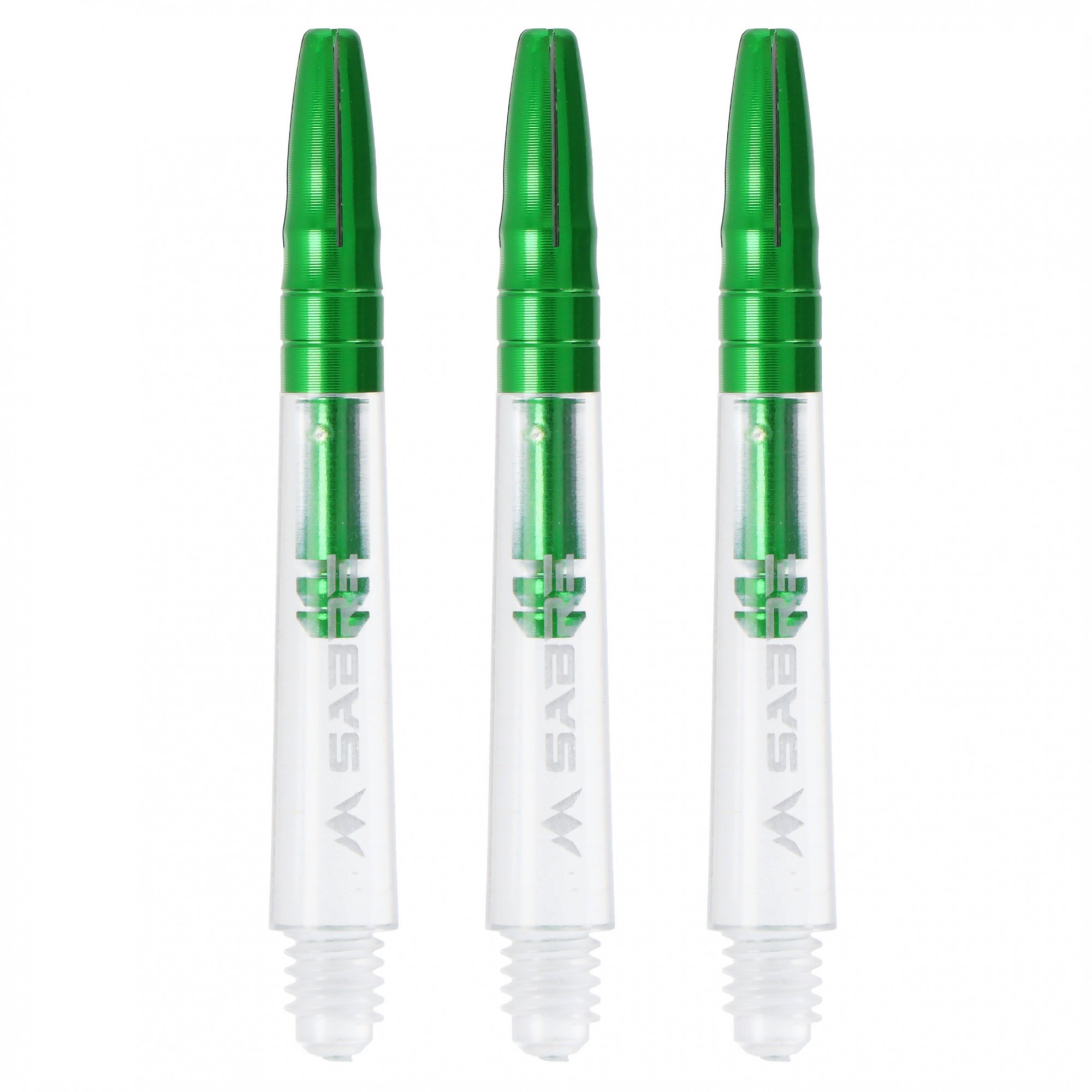 Dart Schaft Sabre transparent grün, Polycarbonat mit Aluminium kurz und kompakt, unsere Aluminium Dartschaft stellt sich vor ✅ Kunststoff, Aluminium Qualität, extrem stabil und haltbar! ✅ 2 BA Durchmesser Schraubgewinde: ca. 0,4cm ✅ Schaft Gewinde 6mm Länge 2BA das Standardgewinde ✅ super stabil, gewohnt hoher Shaft Standard ! ✅ erhätlich in short, tweenie, tweenie plus ✅ bitte die Variante der Länge rechts auswählen ! Die transparent grünen Polycarbonat Dart Schäfte mit dem trendigen Design. Ein einzigartiger Dartschaft im Designgewand aus hochwertigstem Material, erhältlich in verschiedenen und hervorragenden Dartschaft Längen in short, tweenie, tweenie plus und Medium. Erhältlich in den trendigen Farben blau, lila, grün lila und gelb etc Wir haben die Schäfte selbst mit Flights probiert, einmal eingeschoben auf den Schaft hält der Flight gewirkt fest verbunden mit dem Aluminium Dartschafende! Du bist auf der Suche nach dem perfekten sitzenden Dartshaft, dann hat mit diesem Dartschaft vermutlich Deine lange Suche ein Ende! Polycarbonat Dartschäfte auch gerne Kunststoff, Plastik Dartschaft genannt gehören zu den klassischen Schäften im Dartsport. Das besondere an diesen Sabre Dart Schäften ist der gute halt der Dartflights durch das Aluminium Shaftende. Einmal eingeschoben sind die Flights fest mit dem Dartschaft verbunden und nicht mehr so leicht zu entfernen. Dartschaft mit sehr gutem Halt des Dartflights, daher gehören diese Dartschäfte mit zu den besten Dartschäften am Markt ✅ Perfekter halt, dank Aluminium Schaftende, Polycarbonat mit 2BA Gewinde Unsere Dartschäfte im trendigen Design punkten durch die hohe Verarbeitungsqualität und die saubere Verarbeitung. Diese Dartschäfte werden perfekt durch den stabilen Auftritt in Szene gestellt, der Flight hält wird stark im Dartshaft festgehalten. Aufgrund des gut starken Halt vom Flight im Shaft ist keine Lochung des Flights notwendig, auch die optionale Lochung vom Flight entfällt bei dieser Shaftversion. Die 100 und 150 Micron starken Flight halten in diesen Schäften wirklich unglaublich gut und stark. Nur mit Kraftaufwand können die Flights wieder vom Shaft gelöst werden, daher sind die Schäfte unsere Meinung nach mit die haltbarsten Dartflights am Markt. Technische Daten für die Mission Sabre Shafts Material: Polycarbonat mit Aluminium Stärke: extrem robust Farbe: transparent grün / clear green System: short / kurz 36mm, 2BA Gewinde System: tweenie 40mm, 2BA Gewinde System: tweenie plus 44, 2BA Gewinde System: medium 49mm, 2BA Gewinde Gewicht: short ca. 1,16 Gramm, tweenie 1,24 Gramm, tweenie plus 1,36 Gramm, medium 1,48 Gramm Abmessungen: short ca. Länge 36mm ohne Gewinde, 42mm mit Gewinde tweenie ca. Länge 40mm ohne Gewinde, 42mm mit Gewinde tweenie plus ca. Länge 44mm ohne Gewinde, 49,6mm mit Gewinde medium ca. Länge 49mm ohne Gewinde, 54,4mm mit Gewinde Hersteller: Mission,