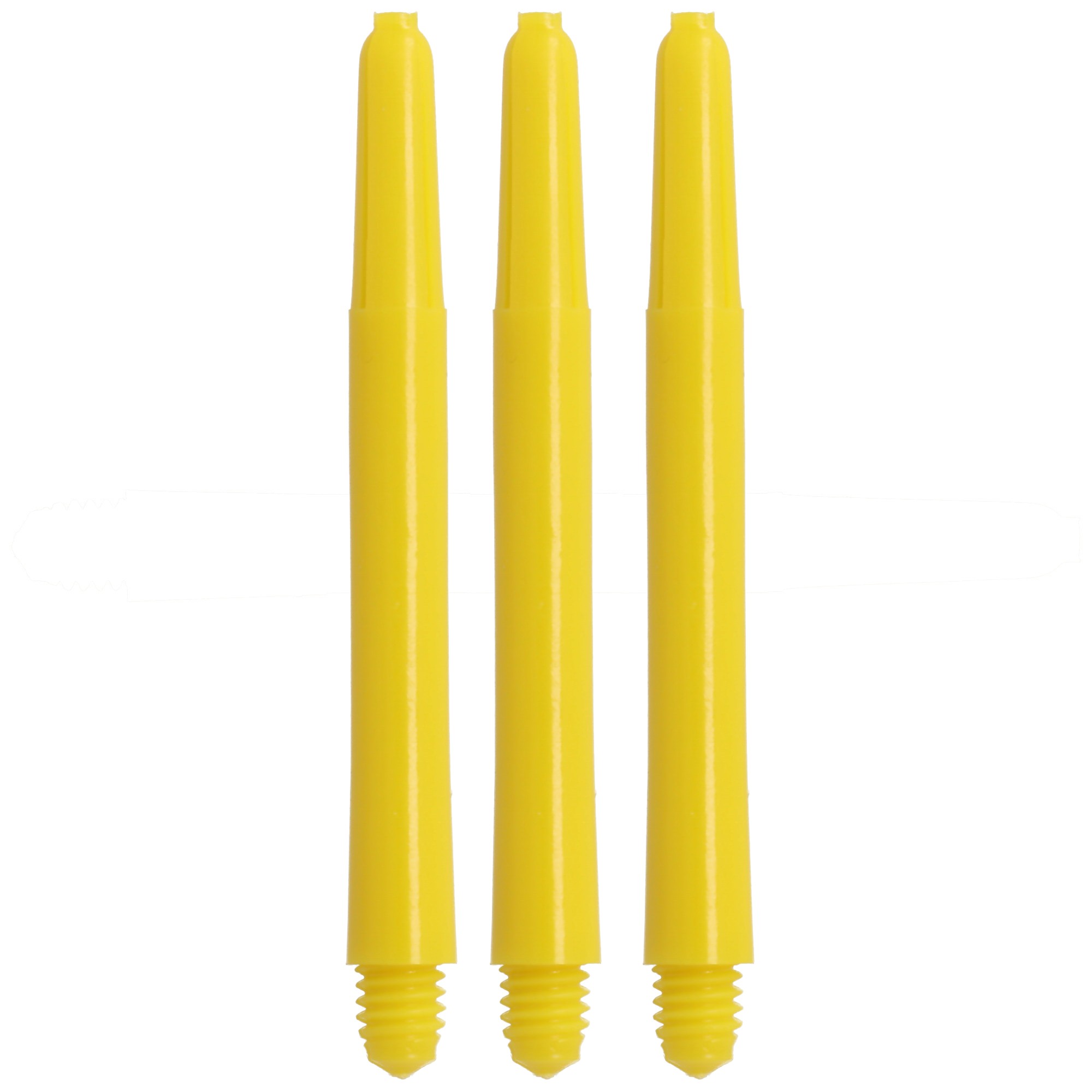 Nylon Dartschaft gelb, klassisch, 48mm, Gesamtlänge 54,1mm kurz und kompakt, unser klassischer Nylon Dartschaft stellt sich vor ✅ gelber Dartschaft Nylon im 2BA Standardgewinde ✅ millionenfach bewährte, gleichbleibende Qualität in sehr guter Verarbeitung! ✅ Dartschaft 2Ba Durchmesser Schraubgewinde ✅ Softtip Gewinde 6 mm 2BA das Standardgewinde ✅ gewohnt hoher Nylon Standard ! ✅ Länge mit Gewinde: 54,1mm, Länge ohne Gewinde: 48mm ✅ millionenfach verkauft, hochwertige Verarbeitung ! Die beliebten Nylon Dartsschäfte im gelben Gewand. Ein einzigartiges Dartshaft Design aus hochwertigem Material, erhältlich in verschiedenen und hervorragenden Farbkombinationen weiß, natural und gelb mit der extra langanhaltenden Nylon Materialstärke und bis zu 3 verschiedenen Dartschaft Farbvarianten. Nylon Dartsschäfte sind mit die ältesten, wohl mit am bekanntesten und die meist bespieltesten Dartshafts im Steeldart und E-Dart Dart Bereich. Viele Hersteller haben sie sich zum Vorbild genommen was bei der Qualität der Nylon Schäfte nicht verwunderlich ist. Sie halten zwar auch nicht ewig aber doch meist wesentlich länger als so manch andere farbigen Shafts aus Kunststoff. Mit einer Länge von etwa 54,1mm ohne das übliche 2BA Gewinde gemessen gehören sie zu den gängigsten Dartschäften. Durch die Auswahl verschiedener Farben ist es ein leichtes seinen Dartpfeil immer dem Design des Barrels, Dartshaft und dem Flight anzupassen. Bei uns im kilo80 bieten wir Euch 3 Farben der klassischen Nylon Dartschäfte an die Ihr wahlweise in verschiedenen Mengen bestellen könnt. Die verschiedenen Farben der Nylonschäfte sind schwarz, gelb, weiß, und natur / Beige etc. ✅ Nylon Dartshafts 48mm, Gesamtlänge 54,1mm in extrem guter Ausfertigung, Standard 2BA Nylonshafts: sind bekannt für die gute Passform im Dart Barrel, einmal aufgeschraubt halten sie gefühlt ewig! Bei Nylon Schäften sind die sogenannten Gummiringe / Dartgummi / Gummis meist überflüssig, da sich die Nylonschäfte normalerweise nicht so leicht vom Dart Barrel lösen lassen. Wir empfehlen auf jeden Fall Dartkronen oder die Lochung vom Dart Flight und die Verwendung von Schaftringen / Federring. Der Flight zusammen mit der Lochung und den Federschaftringen im Verbund mit dem Nylon natural Schaft bilden zusammen eine fast perfekten Zusammenhalt. Auch die Haltbarkeit der Dartshafts wird durch die Lochung und Verwendung der Federringe um ca. 50% verlängert, Technische Daten für die Nylon Dart Shaft Material: Nylon Stärke: Standard bis robust Farbe: gelb System: 2BA Gewinde Gewicht: ca. 1,15 Gramm Abmessungen: ca. 48mm ohne Gewinde , ca. Länge 54,1mm mit Gewinde Nylon Schäfte sind immer gut zu den Stoff-Flights passend und werden gerne zusammen mit den meist silbernen Kronen eingesetzt. Der Schaft der Profis. Alte Darthasen schätzen die Qualität und Belastbarkeit, dieser Dartschäfte aus Nylon, sie sehen vielleicht nicht so trendig aus wie moderne andere Schäfte, aber sie sind bewährt, extrem langlebig und formstabil. Deshalb gehören sie zu den Favoriten der Schäfte. Unwahrscheinlich robuster Schaft in extra 48mm langer Ausführung. Inhalt der Lieferung: 3 Schäfte, 48mm ohne Gewinde, Gewicht ca. 1,15 Gramm (Abbildung ähnlich, kann je nach Fertigungscharge farblich heller oder dunkler abweichen, teilweise abgebildete Teile und Darts, Flights, Spitzen, Dartboards nicht enthalten)