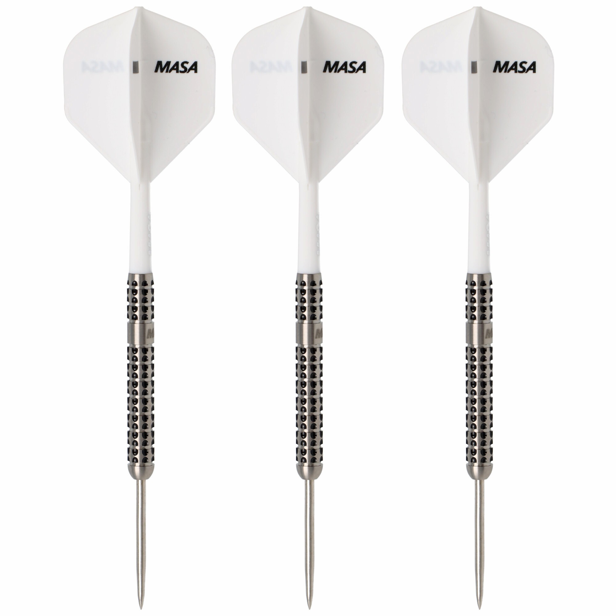 MASA 2 Steeldart, Modell 02, Griplevel 7,5, mit L-Style Flights, 90% Tungsten, 23 Gramm kurz und kompakt, die MASA 2 Steeldarts stellen sich vor ✅ Steeldarts Modell 2 von MASA – Marcel Sandner! ✅ 90% Tungsten ✅ Gewicht 23 Gramm ✅ zwei markante Gripzonen mit dem neuen MESH-Grip! ✅ inklusive L-Style x MASA “Capitano” L1EZ Flights weiß ✅ hochwertige Premiumbox mit hochwertigem Zubehör von MASA! ✅ inklusive MASA ClickStand – die perfekte Aufbewahrung für deine neuen MASA Darts! Wenn du auf der Suche nach einem Steeldart bist, der kompromisslose Kontrolle, moderne Präzision und ein absolut klares Spielgefühl vereint, dann wird dich der MASA 2 Steeldart – Modell 02 – sofort begeistern. Dieses Modell wurde für Spieler entwickelt, die ein puristisches, schnörkelloses Design schätzen, gleichzeitig aber eine Performance erwarten, die jedes Detail, jede Linie und jede Entscheidung im Wurf unterstützt. Das Ergebnis ist ein Dart, der nicht nur gut aussieht, sondern dir das Gefühl gibt, jederzeit über absolute Kontrolle zu verfügen – und genau dort liegt die Stärke dieses Barrels. Ein Barrel, der dich sofort spüren lässt, wo du stehst Der MASA 2 ist der erste MASA Barrel im Straight-Design – und das merkt man. Von Anfang bis Ende zieht sich eine klare, gerade Linie durch den Barrel, wodurch du beim Greifen immer dieselbe Stabilität spürst. Gerade Spieler, die Wert auf ein direktes, unverfälschtes Feedback legen, finden hier ihren perfekten Partner. Kein unnötiger Schnickschnack. Keine Spielereien. Nur du, der Barrel und die pure Kontrolle. Mit einem Tungsten-Anteil von 90% bietet dir dieser Dart nicht nur ein schlankes Profil, sondern auch eine ausgesprochen hohe Stabilität. Dadurch liegt er satt in der Hand, bleibt aber stets feinfühlig und kontrollierbar. Genau dieser Balanceakt – robust und gleichzeitig präzise – macht den MASA 2 einzigartig in seinem Segment. Der neue MESH-Grip: Zwei Zonen für maximale Kontrolle Das absolute Highlight dieses Barrels ist der neue MASA MESH-Grip. Dieser Grip ist radial und axial strukturiert – das bedeutet, du bekommst ein Griffgefühl, das rundum greift. Du spürst nicht nur Halt an einer Stelle, sondern eine gleichmäßige Oberfläche, die deinen Fingern in jeder Wurfphase Orientierung bietet. Es gibt zwei markante Gripzonen, die durch eine klare, fühlbare Brücke voneinander getrennt sind. Diese Brücke dient dir als Ankerpunkt, sodass du jederzeit spürst, ob du richtig greifst. Ohne hinzuschauen, ohne zu überlegen. Du nimmst den Dart in die Hand – und fühlst sofort: Das passt. Mit einem Griplevel von 7,5/10 gehört dieser Dart zu den griffigeren Modellen, ohne übertrieben aggressiv zu wirken. Du bekommst ein sattes, zuverlässiges Gefühl, das dir hilft, nicht zu verrutschen oder zu verkrampfen. Ob du eher fest greifst oder locker spielst – der MASA 2 unterstützt deinen Stil, statt ihn zu erzwingen. MASA 2 Steeldart – Modell 02: Kontrolle in ihrer klarsten Form Optisch bleibt der MASA 2 konsequent puristisch. Keine überladenen Fräsungen, keine übertriebenen Farben, keine Spielereien. Stattdessen setzt MASA auf ein klares, modernes Design, das die hochwertige Verarbeitung des Barrels in den Mittelpunkt stellt. Jeder Schnitt, jede Linie ist bewusst gewählt und funktional – ein Dart, der Professionalität ausstrahlt, ohne sich in den Vordergrund drängen zu müssen. Die 32 mm Stahlspitzen sind von Hand strukturiert. Jede Spitze ist ein kleines Kunstwerk für sich und sorgt nicht nur für Grip am Board, sondern auch für ein absolut stimmiges Gesamtpaket. Perfekt ausbalanciert für deinen Wurf Was diesen Dart besonders angenehm macht, ist seine Balance. Der MASA 2 ist konsequent ausbalanciert – du hast keinen Schwerpunkt, der dich nach vorn oder hinten zwingt. Egal, ob du vorne, mittig oder hinten greifst: Der Dart bleibt stabil, reagiert klar und gibt dir ein unmittelbar nachvollziehbares Feedback. Viele Spieler bemerken bereits nach wenigen Würfen, dass die Flugkurve extrem natürlich wirkt – und genau das ist das Ziel. Der MASA 2 soll sich deinem Stil anpassen, nicht andersherum. Mit seinen 23 Gramm Barrelgewicht (inkl. Spitze) findest du hier eine solide, vielseitige Grammatur, die sowohl ambitionierte Hobbyspieler als auch fortgeschrittene Turnierspieler anspricht. Premium-Zubehör – direkt im Set enthalten MASA liefert den MASA 2 nicht einfach in einer Standardverpackung aus. Du bekommst ein Set, das von Anfang an das Gefühl vermittelt, etwas Besonderes in den Händen zu halten. Im Lieferumfang findest du: 3 x MASA 2 Barrels mit handstrukturierten 32 mm Spitzen 3 x 35 mm MASA Silver Schäften (weiß) inkl. Aluminiumringen 3 x L-Style x MASA „Capitano“ L1EZ Flights (weiß) 1 x MASA ClickStand – perfekte Präsentation deiner Darts 1 x Premium Magnetbox – hochwertig, sicher und stilvoll Besonders die L-Style x MASA „Capitano“ Flights sind ein Highlight, das du so nicht überall bekommst. Diese Flights passen nicht nur optisch perfekt zum cleanen Design des Barrels, sondern bieten dir auch langlebige Qualität und maximale Stabilität im Flug. Der MASA ClickStand sorgt zusätzlich dafür, dass deine neuen Darts auch dann gut aussehen, wenn du gerade nicht spielst. Er ist praktisch, minimalistisch und ideal, wenn du deine Darts gerne präsentierst oder griffbereit neben dem Board platzierst. Ein Dart, der dich sofort weiterbringt Wenn du nach einem Dart suchst, der dir helfen soll, deine Konstanz zu verbessern, deine Würfe zu stabilisieren und dir vor allem mehr Selbstvertrauen am Oche gibt, dann ist der MASA 2 Modell 02 ein absoluter Volltreffer. Die Kombination aus präzisem Straight-Design, dem neuen MESH-Grip, der klaren Brücke zur Orientierung und der hochwertigen Fertigung macht dieses Modell zu einem Werkzeug, das dich nicht im Stich lässt. Du wirst spüren, wie sauber der Dart aus der Hand gleitet, wie klar die Rückmeldung ist und wie sicher sich jeder Wurf 