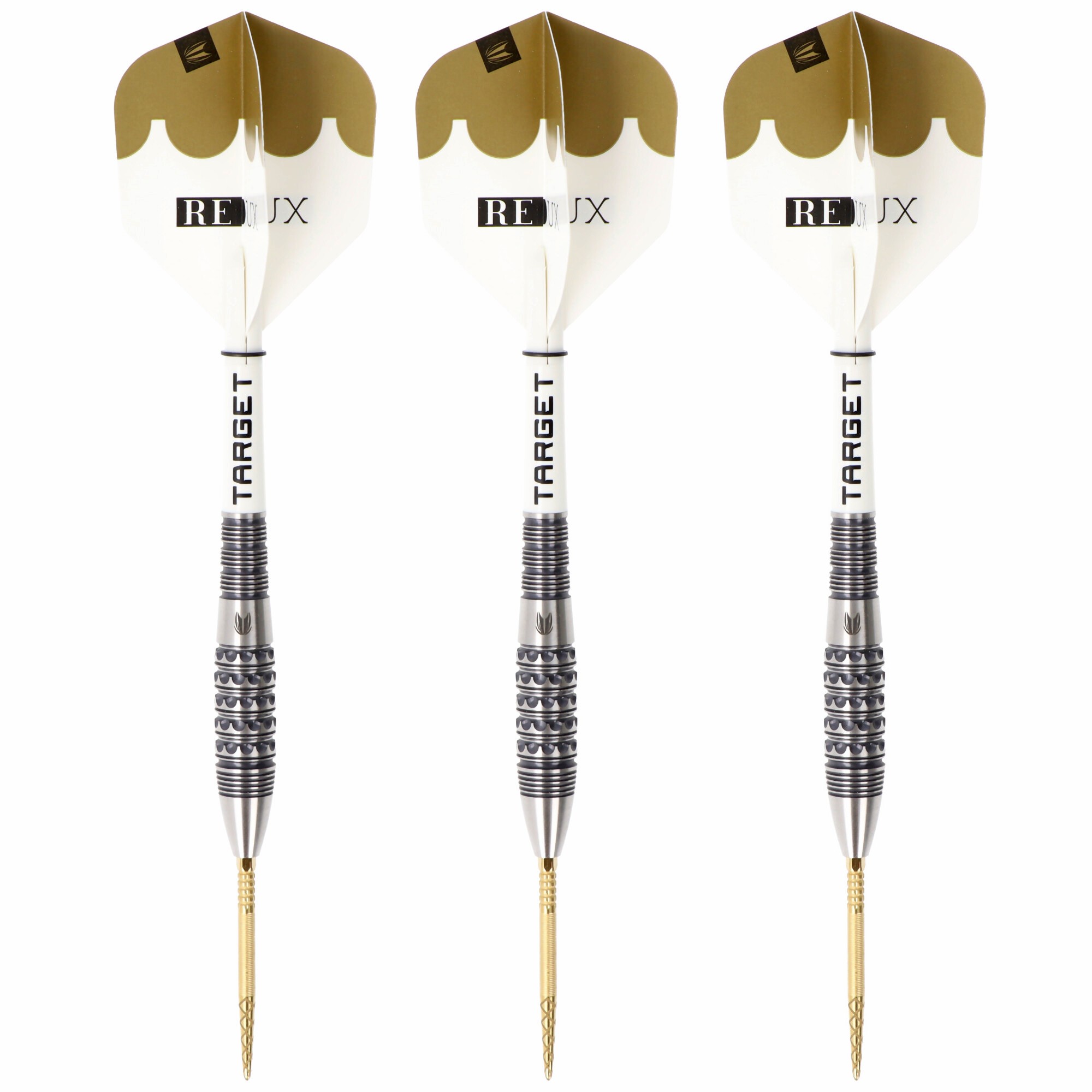 Target Redux 02 Steeldart, Modell 02, SP, 90% Tungsten kurz und kompakt, die Target Redux Steeldarts stellen sich vor ✅ Redux Model 02 Steeldarts von Target! ✅ bitte das gewünschte Gewicht bei den Varianten auswählen! ✅ erhältlich in den folgenden Gewichten: 22 Gramm, 23 Gramm, 24 Gramm, 25 Gramm ✅ 90% Tungsten ✅ exzellenter Grip – radiale Rillen vorne und hinten für deinen individuellen Halt! ✅ beliebtes Swiss Point System – Spitzenwechsel in Sekunden möglich! ✅ hochwertige Verarbeitung, gewohnt hohe Qualität von Target! Du suchst nach einem Dartset, das höchste Qualität, modernes Design und absolute Kontrolle vereint? Dann ist der Target Redux 02 Steeldart genau das Richtige für dich. Dieses Modell aus der neuen Redux-Serie von Target verbindet innovative Technologie mit klassischer Handwerkskunst – entwickelt für Spieler, die ihr volles Potenzial entfalten wollen. Ob ambitionierter Hobbyspieler oder erfahrener Turnierspieler – mit dem Redux 02 hebst du dein Spiel auf das nächste Level. Wähle dein perfektes Dartgewicht Der Target Redux 02 ist in vier verschiedenen Gewichten erhältlich: 22 g, 23 g, 24 g und 25 g. Bitte denk daran: Wähle dein gewünschtes Gewicht in den Varianten aus, bevor du den Dart in den Warenkorb legst. Dein persönliches Wurfgefühl beginnt bereits bei der richtigen Gewichtsauswahl – und Target bietet dir dafür die passende Vielfalt. Barrel aus 90% Tungsten – Qualität, die du fühlst Das Herzstück des Darts, der Barrel, besteht aus hochwertigem 90% Tungsten. Dieses Material ist für seine Dichte und Robustheit bekannt und ermöglicht eine schlanke Barrelform bei gleichzeitig optimalem Gewicht. Dadurch erreichst du engere Gruppierungen auf dem Board und kannst präziser spielen – ideal, wenn du hohe Scores erzielen möchtest oder gezielt auf kleine Felder wirfst. Exzellenter Grip für maximale Kontrolle Der Target Redux 02 ist mit einem ausgezeichneten Grip ausgestattet, der dir Sicherheit bei jedem Wurf gibt. Vorne und hinten befinden sich radiale Rillen, die für deinen individuellen Halt sorgen. Diese sorgen für einen sanften Griffübergang, egal ob du weiter vorne oder eher hinten greifst. So findest du intuitiv deine perfekte Fingerpositionierung – für einen präzisen, gleichmäßigen Wurf, der sich natürlich anfühlt und Vertrauen schafft. Weiter hinten findest du das Target Logo mit Nanogrip als eine gute Orientierung. Target Redux 02 Steeldart – Präzision, Design und Performance in Perfektion Ein besonderes Highlight ist das innovative Swiss Point System von Target. Mit diesem System kannst du die Dartspitzen in nur wenigen Sekunden wechseln – ganz ohne zusätzliches Werkzeug oder großen Aufwand. Egal, ob du beschädigte Spitzen austauschen oder von Standard- auf Spezialspitzen wechseln möchtest: Mit dem beigefügten Swiss Point Tool erledigst du das im Handumdrehen. Beim Redux 02 sind bereits Swiss DX 30 mm Gold Steeldartspitzen verbaut – stylisch, langlebig und zuverlässig. Lieferumfang – alles, was du zum Start brauchst Du erhältst ein perfekt abgestimmtes Set, das keine Wünsche offen lässt: 3x Target Redux Barrels (90% Tungsten) 3x Target Pro Grip Short Shafts 3x Pro.Ultra No.6 Flights im exklusiven Redux Design 3x Swiss DX 30 mm Gold Steeldartspitzen 1x Swiss Point Tool zum schnellen Spitzenwechsel Damit bist du sofort startklar und kannst ohne Umwege direkt ans Board treten. Perfekte Verarbeitung – gewohnt hohe Target-Qualität Target steht seit Jahren für erstklassige Darts, präzise Verarbeitung und langlebige Materialien – und der Target Redux 02 macht hier keine Ausnahme. Jeder Barrel wird sorgfältig gefertigt, um gleichbleibende Gewichtstoleranzen, perfekte Balance und eine angenehme Haptik zu gewährleisten. Du wirst sofort merken: Dieser Dart liegt nicht nur gut in der Hand, er bleibt auch nach vielen Trainingsstunden zuverlässig und hochwertig. Die neue Target Redux Serie – drei Modelle, ein Ziel: dein bestes Spiel Die Redux-Reihe umfasst drei verschiedene Modelle: 01, 02 und 03. Alle Varianten unterscheiden sich in Barrelform und Gewichtsauswahl, um jedem Dartspieler das ideale Setup zu bieten. Modell 01 – schlanke, gerade Form, ideal für Spieler mit Front- oder Mittelgriff. Modell 02 – tropfenförmige Form mit einer vorderen Gewichtsverteilung, kürzere Barrellänge. Modell 03 – leicht tropfenförmige Form nach vorne hin. Wenn du einen Dart suchst, der klassisches Barrel-Design mit modernen Details kombiniert, ist der Redux 02 die beste Wahl. Design trifft Performance Das optische Erscheinungsbild überzeugt auf ganzer Linie: Der Barrel ist mit dezenten Fräsungen versehen, die nicht nur für optimalen Grip sorgen, sondern auch ein elegantes, modernes Finish erzeugen. Ergänzt durch goldene Swiss-Point-Spitzen und Flights im Pro.Ultra No.6 Redux Design, entsteht ein Dart, der nicht nur hervorragend funktioniert, sondern auch optisch ein echter Hingucker ist. Warum der Target Redux 02 genau dein Dart sein könnte ✔ Individueller Grip durch radiale Rillen vorne und hinten ✔ Swiss Point System – schneller Spitzenwechsel ohne Aufwand ✔ 90% Tungsten – schlankes Barrelprofil, ideale Balance ✔ Vier Gewichtsklassen – 22 g, 23 g, 24 g, 25 g ✔ Inklusive Zubehör – Flights, Shafts, Spitzen, Swiss Point Tool ✔ Hochwertige Verarbeitung – langlebig, robust und präzise ✔ Teil der beliebten Target Redux Serie Fazit – Hol dir die Kontrolle über dein Spiel Mit dem Target Redux 02 Steeldart bekommst du einen Dart, der in Sachen Präzision, Stil und Handhabung ganz vorne mitspielt. Die Kombination aus hochwertigem 90% Tungsten, exzellentem Grip und dem innovativen Swiss Point System macht ihn zu einem zuverlässigen Begleiter auf deinem Weg zu besseren Scores und konstanten Leistungen. Wenn du Wert auf Qualität legst und gleichzeitig einen Dart willst, der sich an deine Wurftechnik anpasst, wirst du mit dem Redux 02 garantiert glücklich. Jetzt liegt es